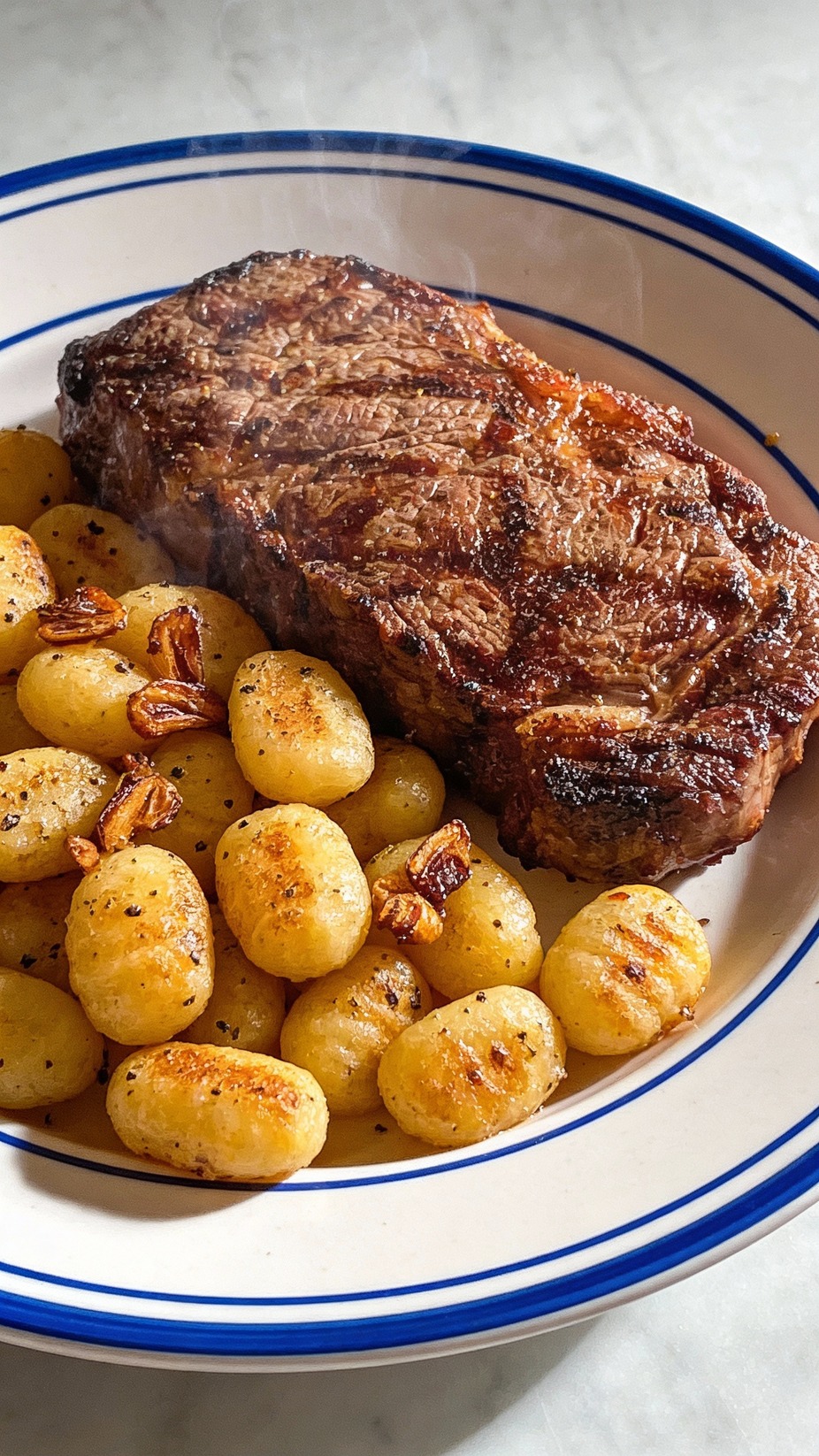 12oz Ribeye - $30 | Served with garlic & olive oil gnocchi.