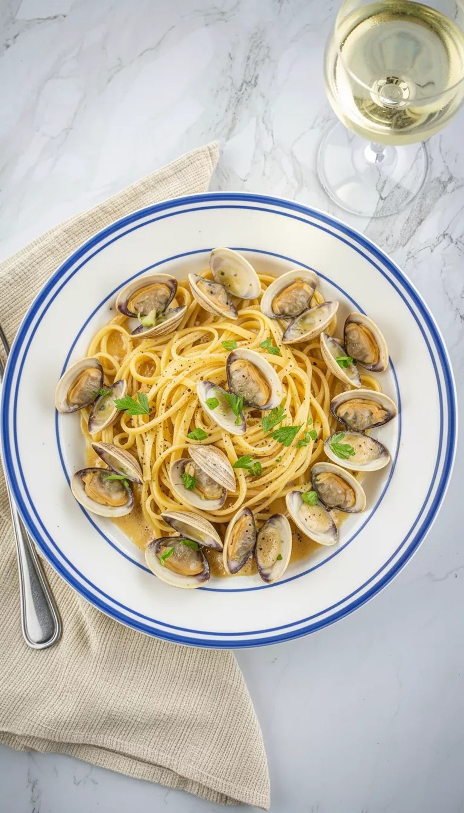 Second Course: Clam Linguine | Linguine pasta with clams in a garlicky white wine sauce. | Paired with Better Half NZ Sauvignon Blanc '23