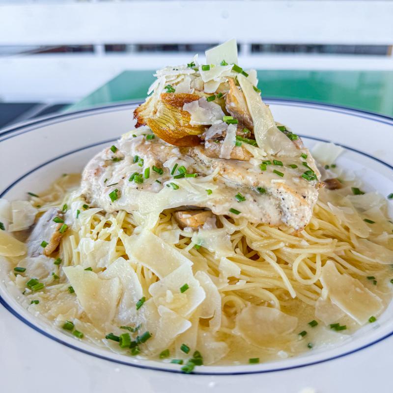 Angel hair pasta, artichoke heart, capers, mushroom, lemon butter sauce.