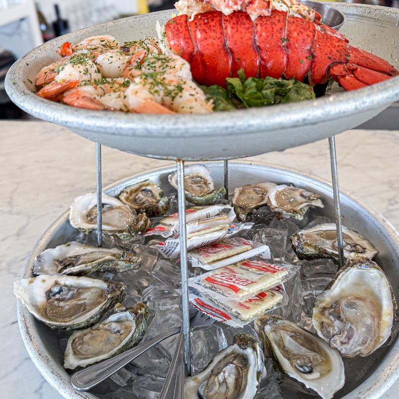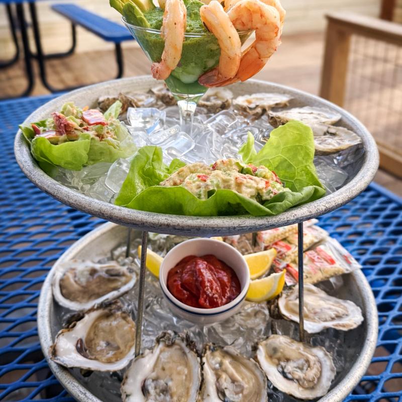 Small Tower $40.00 | Large Tower $65.00 • 1/2 Gulf Oysters, 1/2 East Coast oysters, cocktail shrimp, shrimp Aguachile, lobster salad, & fish dip