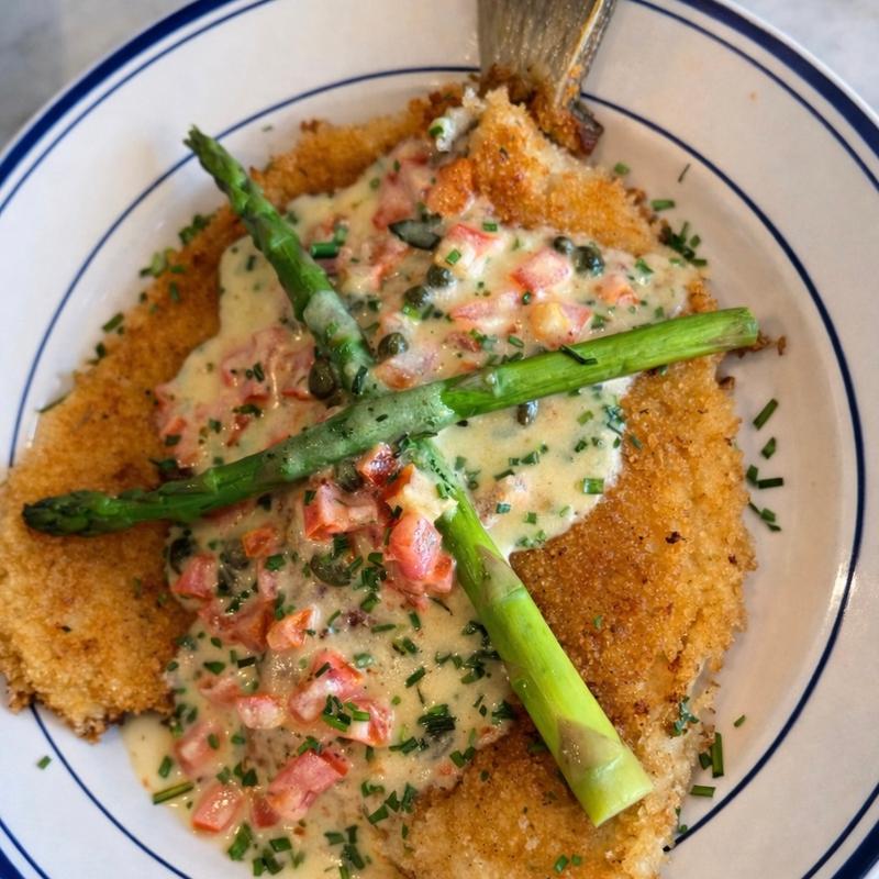 Butterflied flounder topped with diced tomatoes, capers & lemon butter sauce.