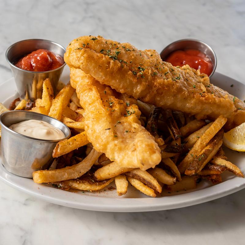 1 piece wild caught Atlantic Cod in beer batter, fries & slaw
