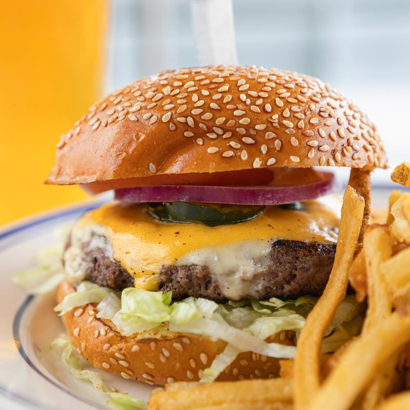8oz patty, LTOP, American cheese, B.A sauce 7 sesame seed bun. Sub grilled chicken